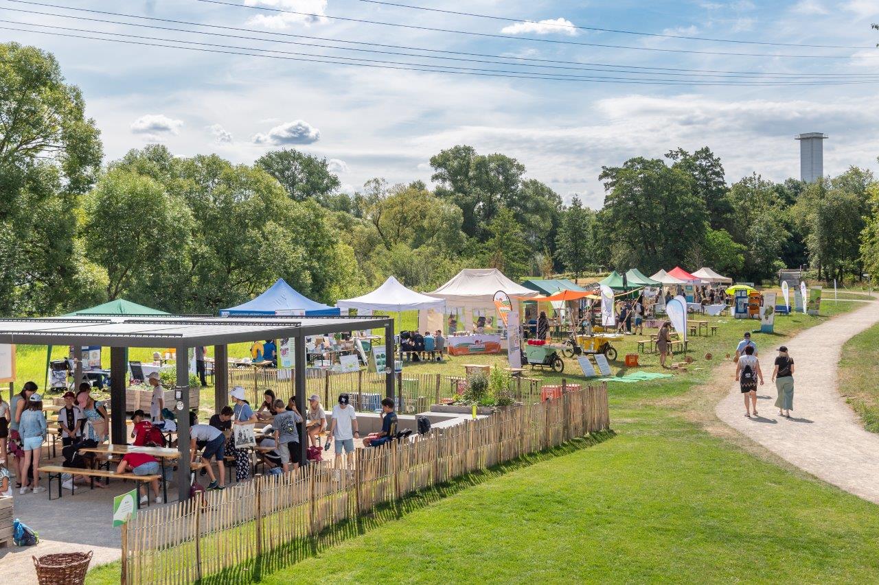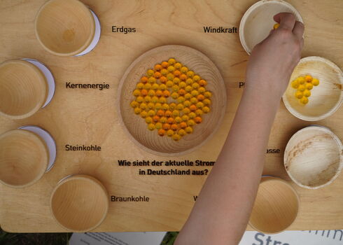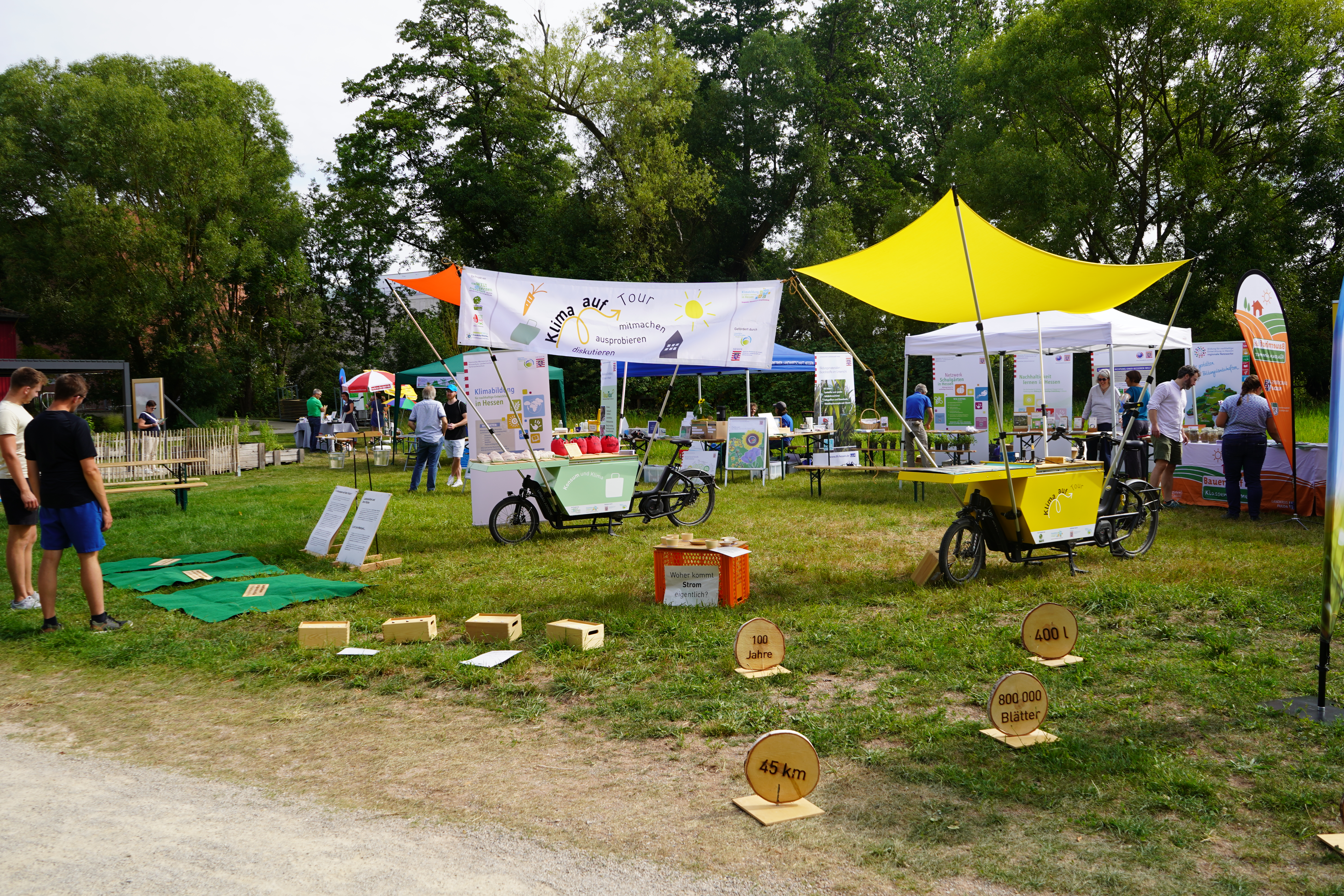 Klima auf Tour macht an verschiedenen Orten in Hessen Station – mal auf dem Marktplatz, mal im Bürgerhaus, mal bei einem Stadtfest. Die mobile Ausstellung wurde im Rahmen einer interkommunalen Zusammenarbeit von Naturschutzhaus Weilbacher Kiesgruben, dem Umweltzentrum Hanau, Umweltlernen in Frankfurt und den lokalen Energieberatungszentren entwickelt.