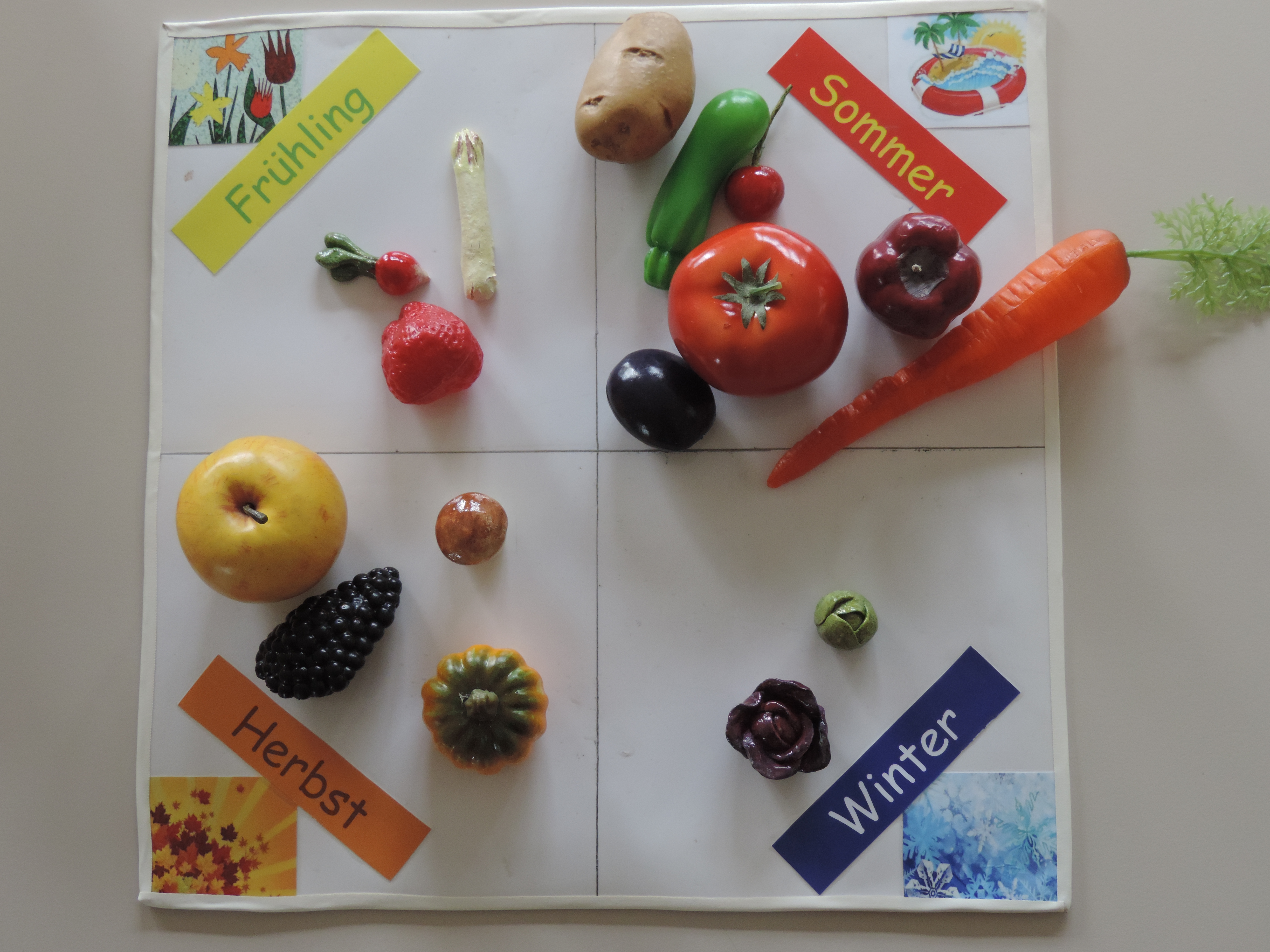 Bei der anschließenden Arbeitsphase im Stationenlernen können die Schülerinnen und Schüler selbstständig u.a. diese Themen vertiefen: die CO2-Bilanz von Lebensmitteln, Saisonalität und Regionalität von Obst und Gemüse, Konsum tierischer Produkte, sowie Legehennenhaltung und Bio-Siegel. Daneben werden auch die Themen Globale Gerechtigkeit und Fairer Handel angesprochen, u.a. bei den Stationen zu fair gehandelter Schokolade und dem kulturellen Vergleich von Ernährungsgewohnheiten.
